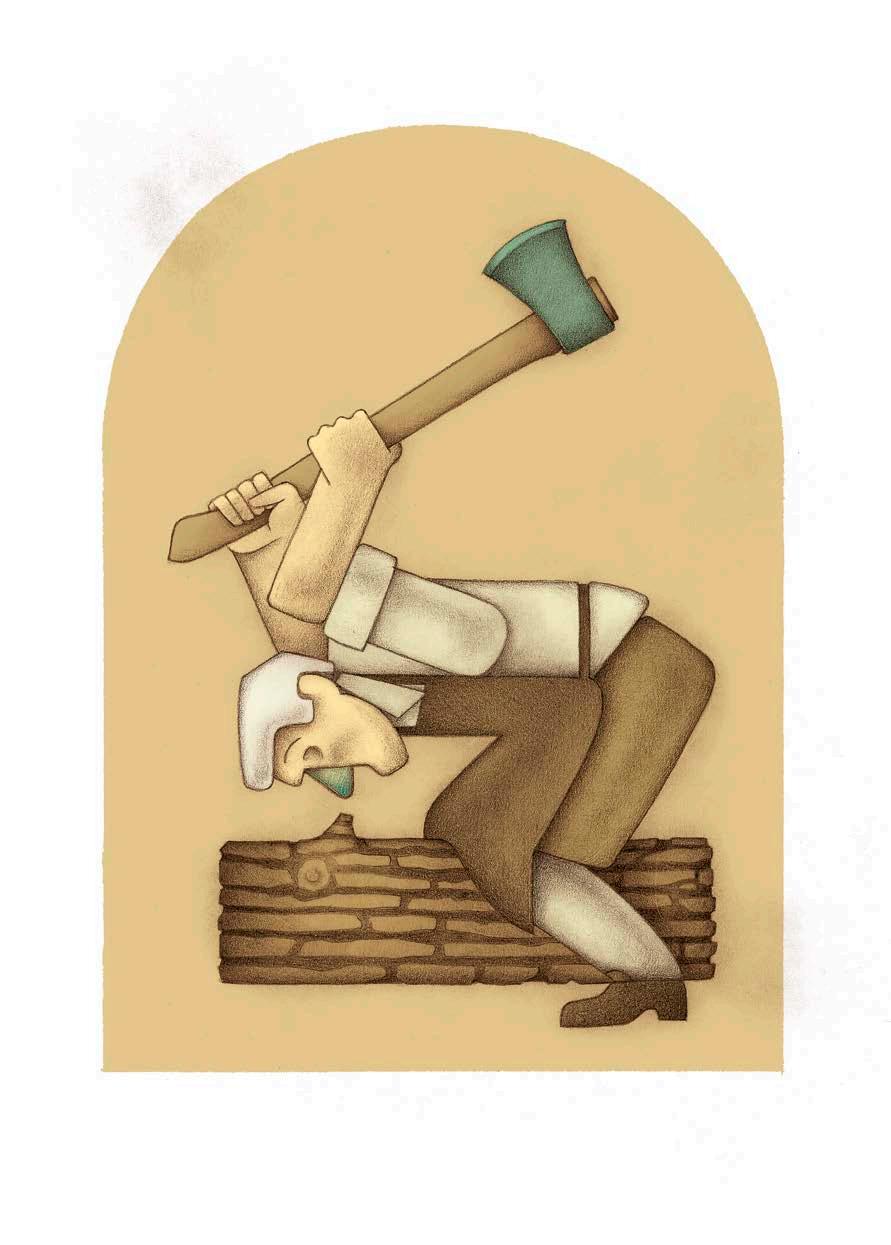 Y cogiendo otra vez el hacha, dio un golpe imponente al trozo de madera.
