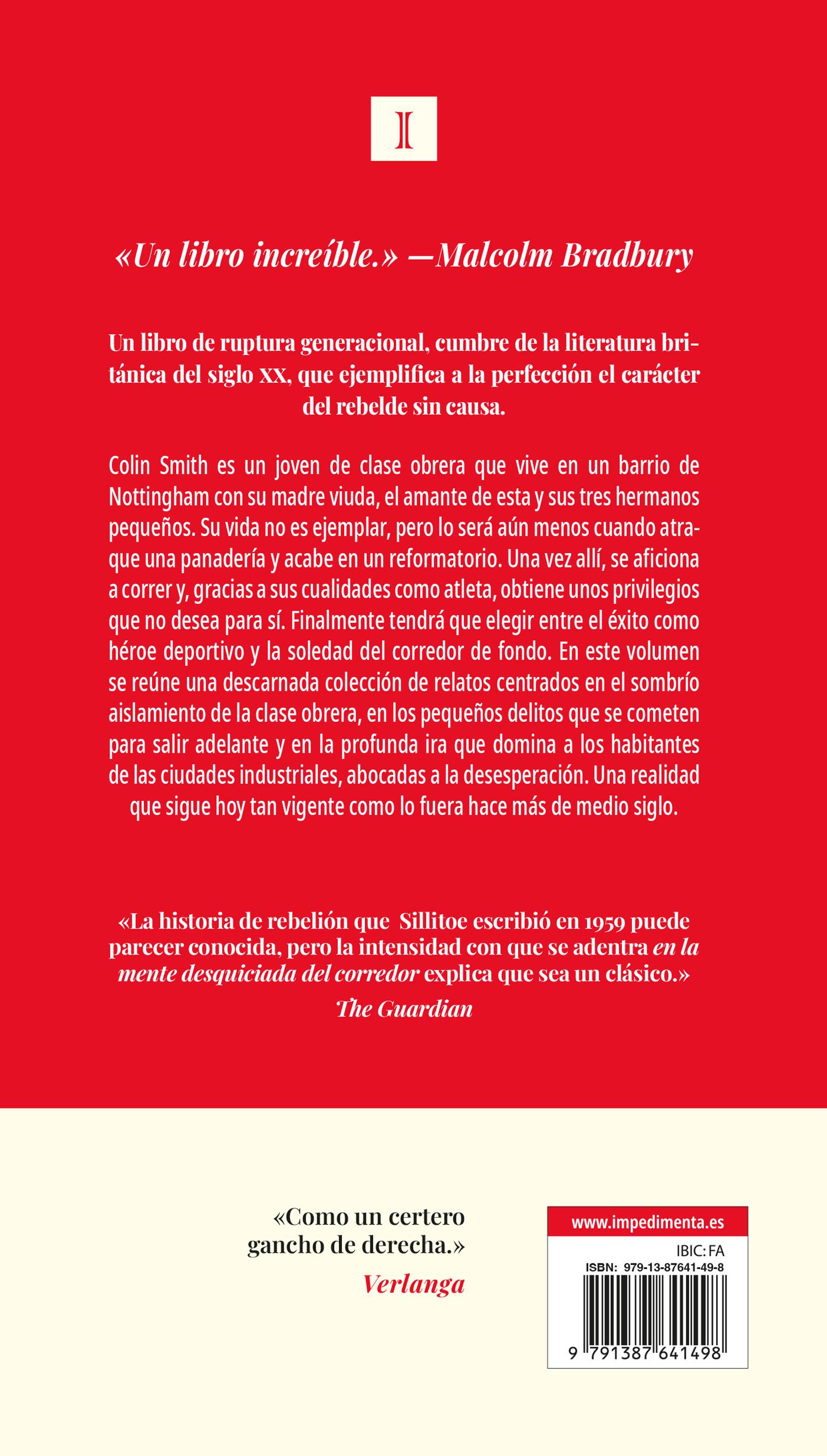 iba a correr sin un guardia pedaleando detrás de mí en una bici no me lo podía creer, pero me contaron que me encontraba en un lugar moderno y progresista, aunque a mí no me engañan porque sé que no es más que un reformatorio como todos, si me atengo a las historias que he escuchado; la única diferencia es que aquí me dejan triscar por ahí de vez en cuando. Porque un reformatorio es un reformatorio, da igual cómo lo pinten; pero, en cualquier caso, al principio no me parecía nada bien que me obligasen a levantarme tan temprano y me enviasen a correr ocho kilómetros con el estómago vacío, hasta que me convencieron de que no lo considerase algo tan malo —cosa que yo siempre supe— y me trataron como a un buen deportista y me dieron palmaditas en la espalda cuando dije que lo haría de mil amores y que intentaría ganar para ellos la copa del Premio Banda Azul de reformatorios (para toda Inglaterra) para carreras campo a través. Y ahora el director habla conmigo cuando viene a hacer sus rondas, casi como hablaría con su caballo de carreras ganador, si tuviese uno.