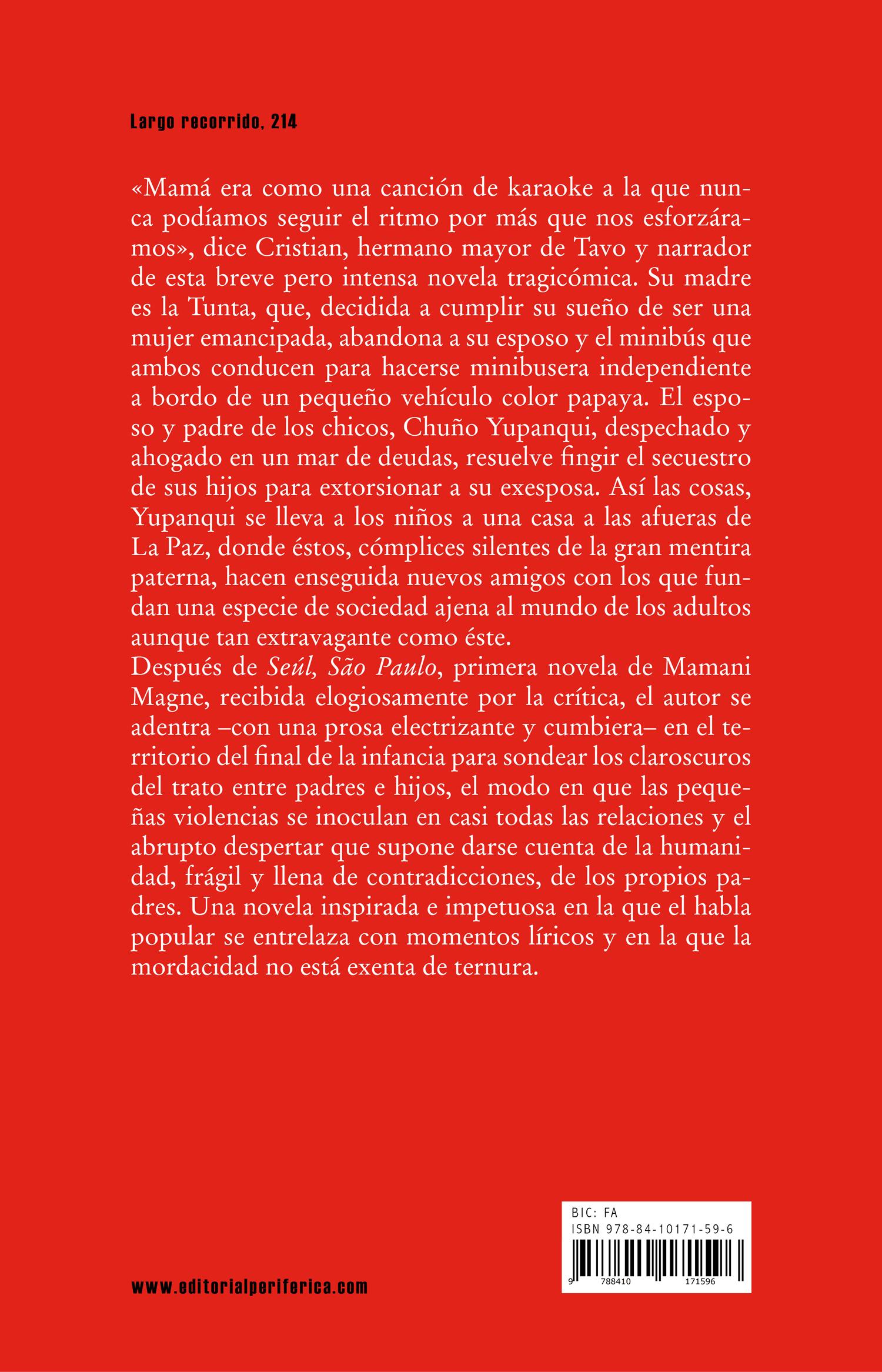 A papá no le cae Colque. A Colque no le cae papá. Chocan desde el día que papá llegó al sindicato, hace diez años ya, y desde entonces su relación ha sido una guerra fría disfrazada de camaradería. Colque es, cómo decirlo, el típico huevón que dice cosas como «Sé hombrecito», «En dictadura se vivía bien». Gordinflón, emputante. Dicen que tira con la hija del presidente del sindicato y que se mete sustancias para correr en los campeonatos. Su guerra con papá es suave. De esas que incluyen indirectas y rumores de que uno es gay o ladrón o indio.
