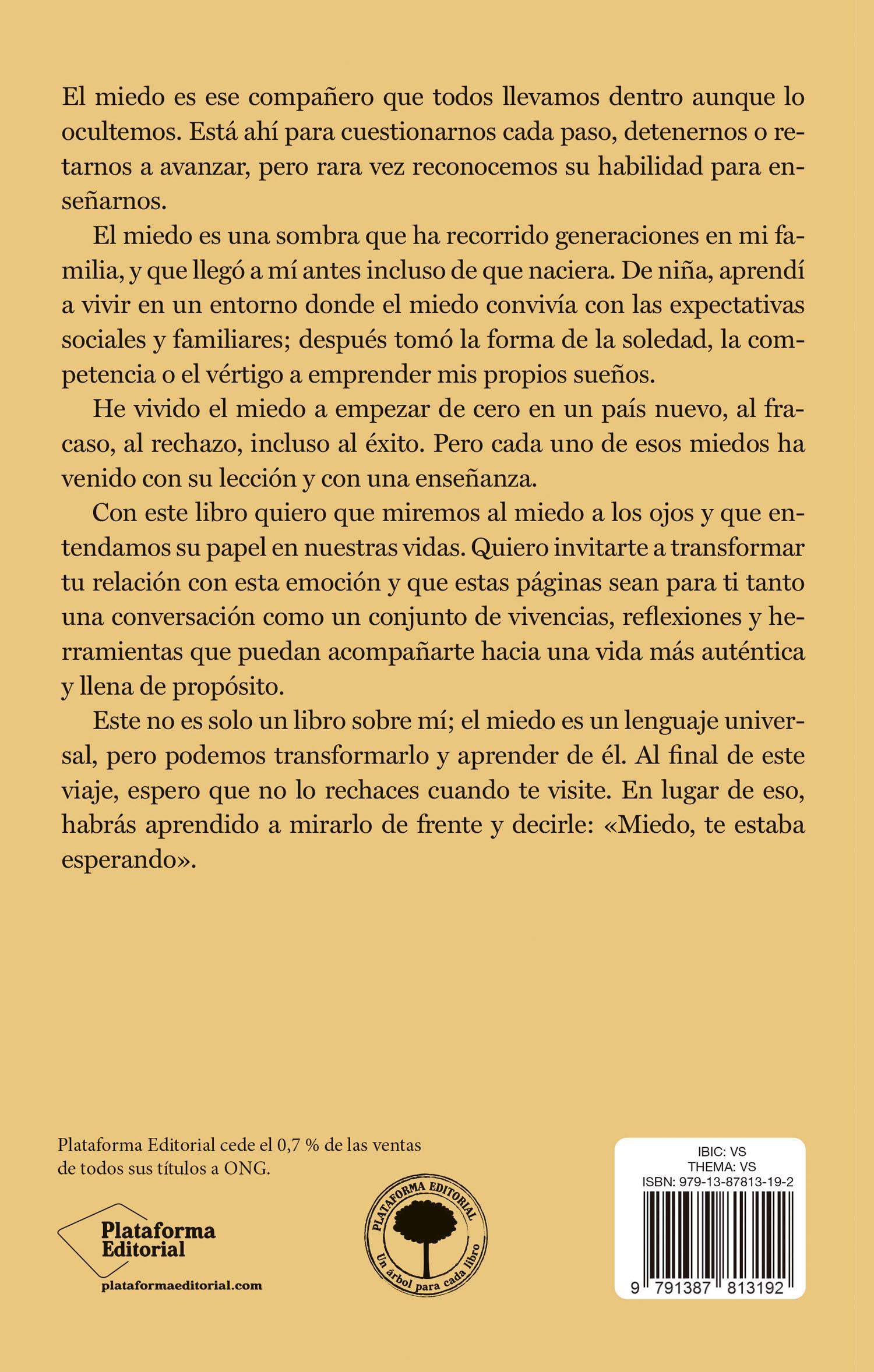 Así que déjame preguntarte: ¿qué harías si no tuvieras miedo? ¿Qué decisiones tomarías? ¿Adónde irías? ¿A quién amarías? Este libro no promete eliminar tus miedos, pero sí cambiar la forma en que los ves. Te invito a que camines conmigo por estas páginas, que encuentres en ellas no solo historias, sino también herramientas y reflexiones que te impulsen a convertir tus temores en tus mayores aliados.