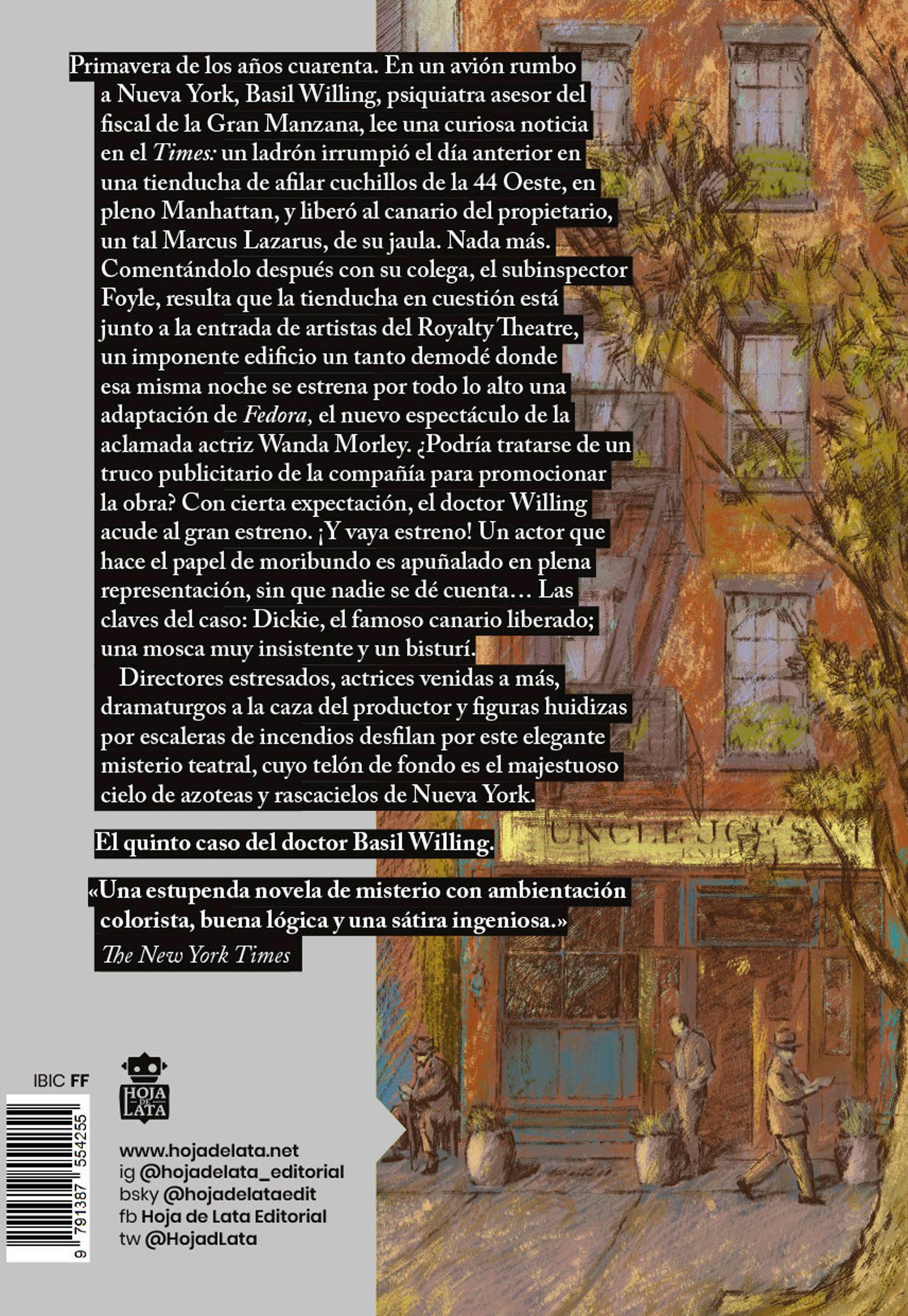 Como la mayoría de los psiquiatras modernos, Basil Willing creía que ningún ser humano hace nada sin un motivo, consciente o inconsciente. El acto inmotivado era un mito, como el unicornio o la serpiente marina. Incluso los deslices y los errores tenían su origen en las necesidades de la naturaleza emocional. Había utilizado su conocimiento de ese hecho para resolver su primer caso de asesinato. Pero ¿cuál era el motivo en esta ocasión? ¿Qué sentimiento había impulsado la mano que abrió la puerta de la jaula del canario ayer por la mañana?