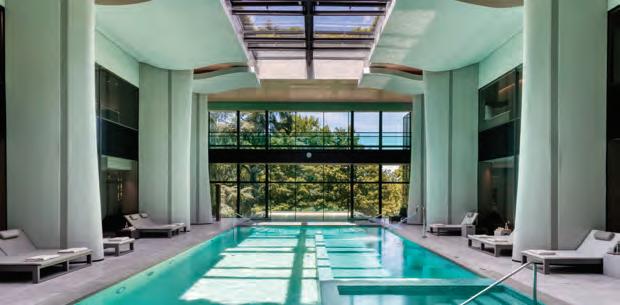 Su spa holístico está reconocido como uno de los mejores de Europa. Aquí, el agua, la piedra y la madera se combinan con una sensibilidad estética impecable en sus instalaciones: piscina cubierta y climatizada enmarcada por la serenidad del bosque, 10 salas de tratamiento, sauna, sala helada, sala de sal, baño turco y gimnasio completamente equipado.