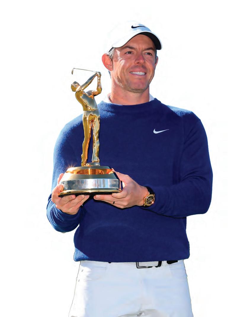 mente, pues era “la única estampa que le faltaba” para llenar el álbum de victorias con los cuatro Majors. Y lo logró del modo más emocionante: primero cometiendo un bogey que le sacó del bolsillo el título en el último momento, siendo empatado por el británico Justin Rose (¿Rory será aficionado al cine de suspenso?); luego, con un golpe de aproximación en el play off que lo puso a pocos decímetros del “hoyo 73” y que coronó con un birdie que le permitió vestir, por primera vez, la ansiada chaqueta verde, recibida del campeón anterior, el estadounidense Scottie Scheffler.