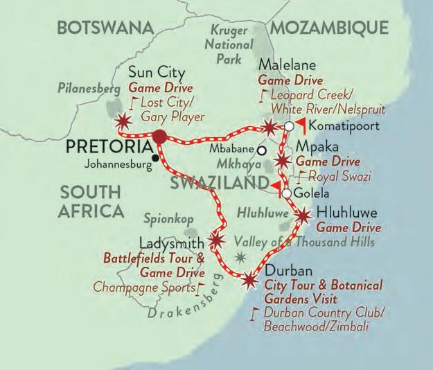 Sudáfrica es uno de los paraísos del golf. Más de 450 campos y grandes campeones así lo demuestran. Además, desde hace décadas cuenta con Rovos Rail, un tren de lujo que organiza un safari de 10 días para jugar en campos de ensueño.