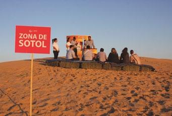 De entrada, el panorama era impresionante, el paisaje se había tornado desértico con su típico tono beige y se alzaba a manera de grandes montañas de fina arena, cuya cúspide representaba para muchos un reto a simple vista. Las primeras actividades fueron sandbording, futbol con esferas gigantes, recorridos en cuatrimotos y jeeps, cabalgatas para admirar la multicolorida puesta de sol, cata de sotol y modelado de arcilla.