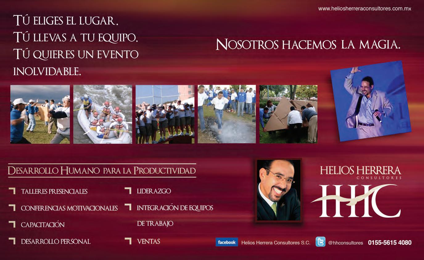 incesante búsqueda de innovar, pues tiene una regla de oro: “Ninguna conferencia debe ser igual,” así que quienes han tenido la oportunidad de escuchar sus ponencias, “La lógica del dinero y la riqueza” y “Los 10 errores más comunes de los buenos vendedores”, tengan la certeza de que no serán lo mismo.