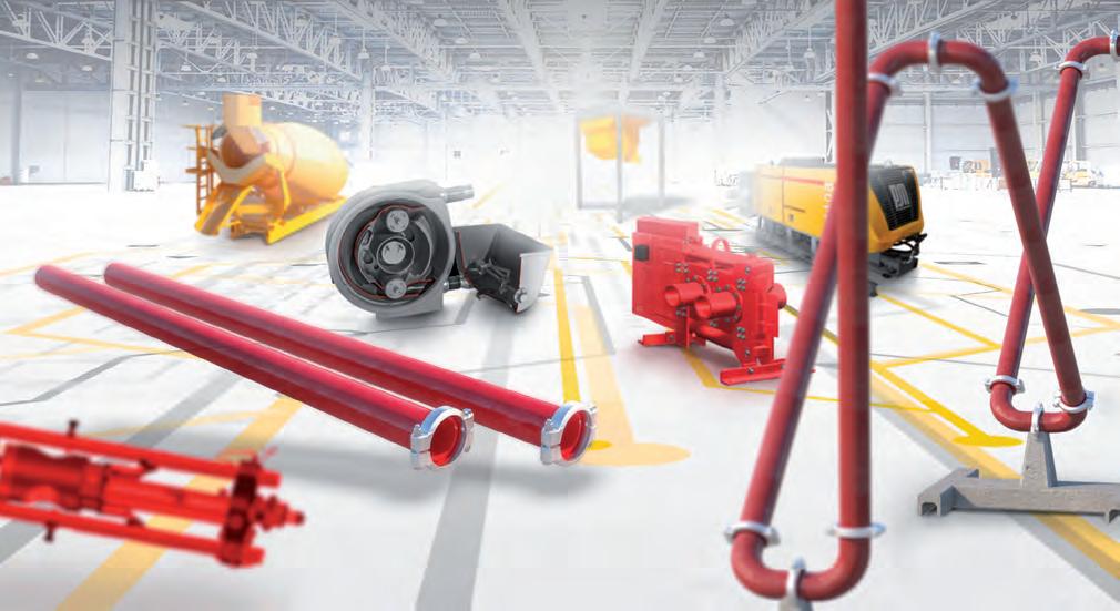equipos de trabajo como el puente grúa para poder realizar otras tareas. Además, la mayor velocidad de vertido de hormigón aumenta significativamente la productividad en comparación con los métodos convencionales. Y mediante la integración de una tubería de transporte, no solo se consigue optimizar la superficie de producción disponible, sino también mejorar considerablemente el aprovechamiento de la carga de hormigón.