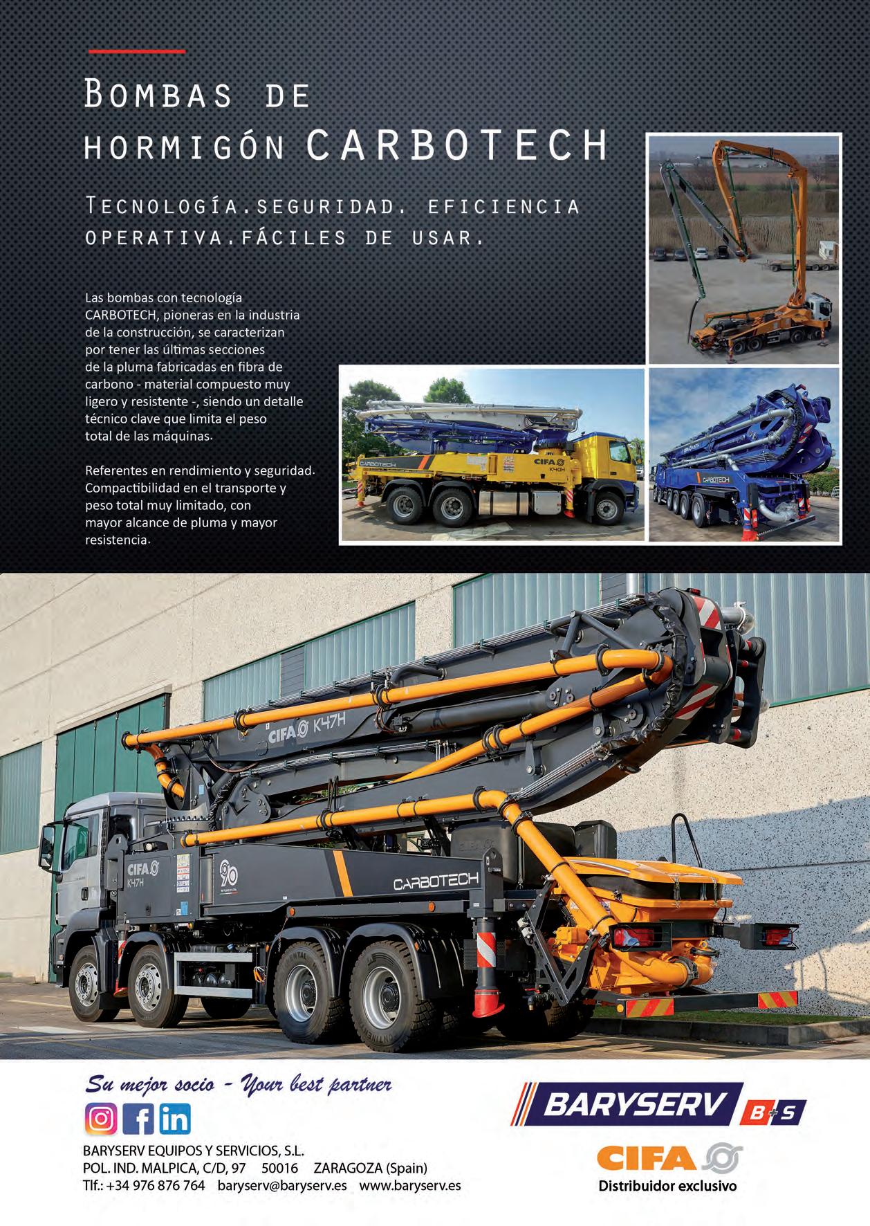 expondrá cuenta con una particularidad: es la unidad 500 de Carbotech vendida. El uso de la fibra de carbono tiene varios pros: tener un brazo de carbono hace que la bomba sea más ligera, por tanto, tiene menos límites de circulación en las carreteras europeas y menos consumo; en otras palabras, es más sostenible a nivel económico y ecológico.