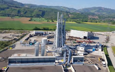 50 por ciento. La planta incorpora también silos de 70 toneladas para el almacenamiento de producto acabado, parque de ligantes con calentamiento eléctrico y sistemas de dosificación de óxido de hierro y aditivos líquidos.