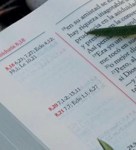 si, como dice el apóstol Pablo, “Cristo es el poder de Dios y la sabiduría de Dios” (2 Cor 1,24), el que no conoce las Escrituras no conoce el poder de Dios ni su sabiduría; de ahí se sigue que ignorar las Escrituras es ignorar a Cristo» (ComIs, Pról, 1-2). Esta Biblia presenta la traducción de la Sagrada Biblia de la CEE, según la editio princeps de 2008. Ha sido enriquecida con introducciones a los distintos libros bíblicos, numerosas citas paralelas en los márgenes y ricas notas de traducción e interpretación del texto, entre las cuales 378 voces sintéticas acerca de los más importantes temas bíblicos. La Biblia, preparada por un nutrido equipo de biblistas y teólogos, tiene en cuenta las distintas