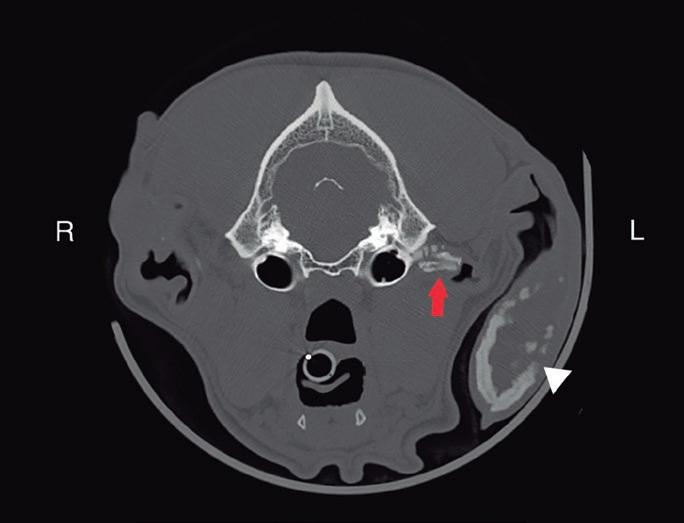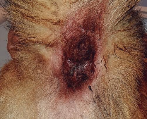 En ventral de la base de la cola también se presentaba eritema y exudación. El resto del cuerpo no presentaba lesiones evidentes.