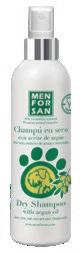 Menforsan presenta un champú en seco para perros en spray formulado con aceite de argán, avena y Aloe vera. El aceite de argán nutre la piel, el Aloe vera tiene funciones hidratantes y la avena proporciona brillo, elasticidad y suavidad al pelaje. Este champú no precisa la utilización de agua ni necesita proceso de aclarado, y debido a su pH neutro adaptado a la piel se puede usar de manera frecuente. Se comercializa en envases de 250 ml con pulverizador.