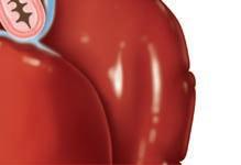 Cirrhosis is the end-stage consequence of liver inflammation secondary to chronic liver disease, drugs, or toxins. In cirrhosis, nonfunctional fibrous scar tissue replaces functional liver tissue, resulting in a small and irregular liver.