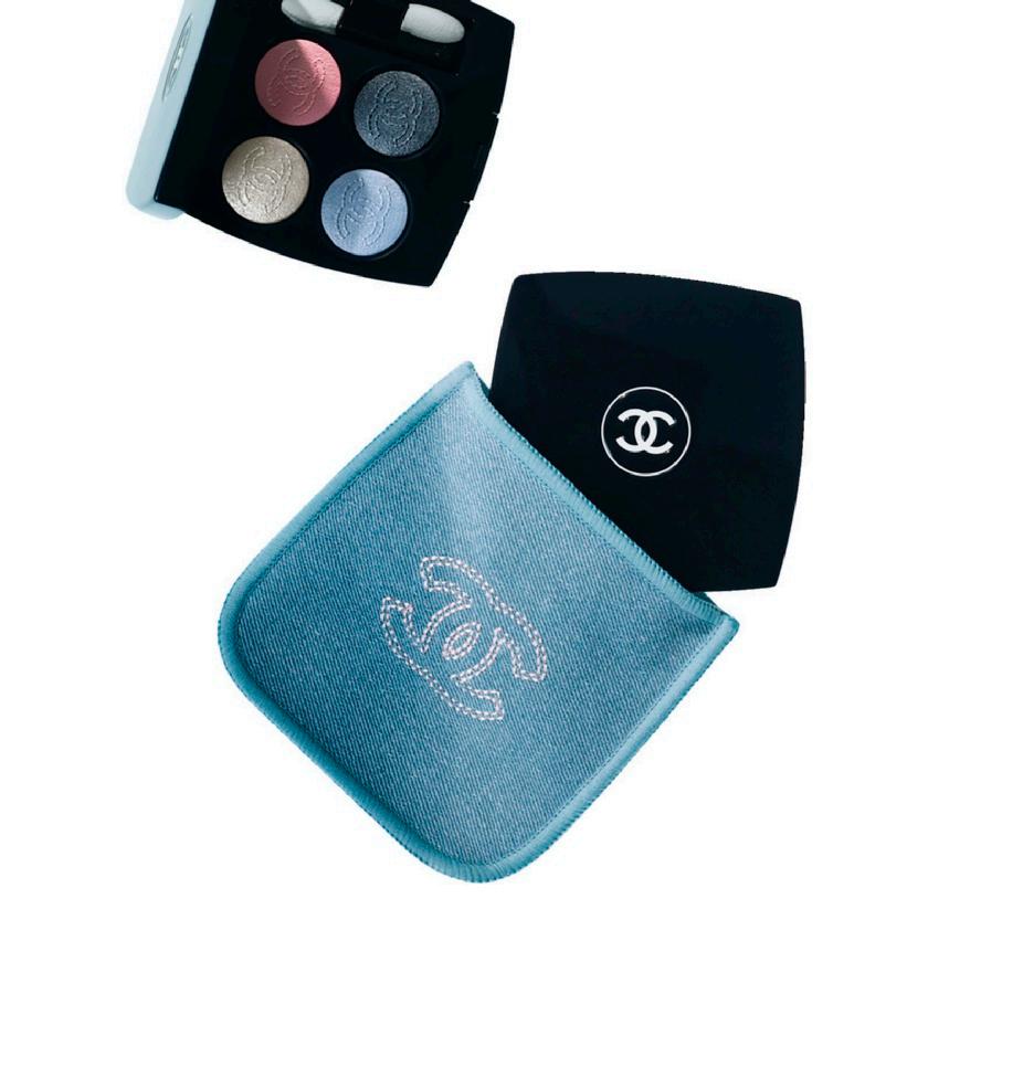 El Coco Denim Illuminating Powder resume el espíritu de la colección. En un tono de mezclilla deslavada con el logo grabado como si estuviera tejido y deposita sobre la piel un velo metálico con refle jos azulados y rosa perlado. La luz no es evidente; es un resplandor delicado que acompaña el movimiento.