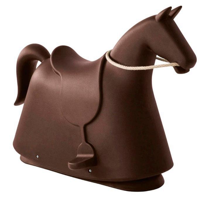 Aquí tenemos al mítico caballito mecedor en color marrón, aunque existen otros tonos, ya sea negro, blanco y vino. Su diseño icónico, creado por el reconocido diseñador Marc Newson, transforma un juguete tradicional en un objeto de colección moderno y elegante. Puede ser tuyo por $42,610.