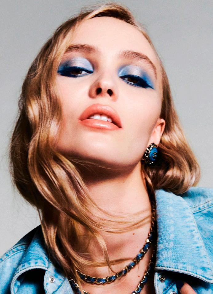 En labios, el Rouge Coco Flash en “Baby Blue” ofrece un acabado translúcido, apenas teñido de azul, que aporta dimensión sin saturar. Se suman “Washed Beige”, “Faded Orange” y “Raw Brown”, guiños a la estética de los 90, cuando la mezclilla y los tonos tierra definían una actitud relajada y segura.