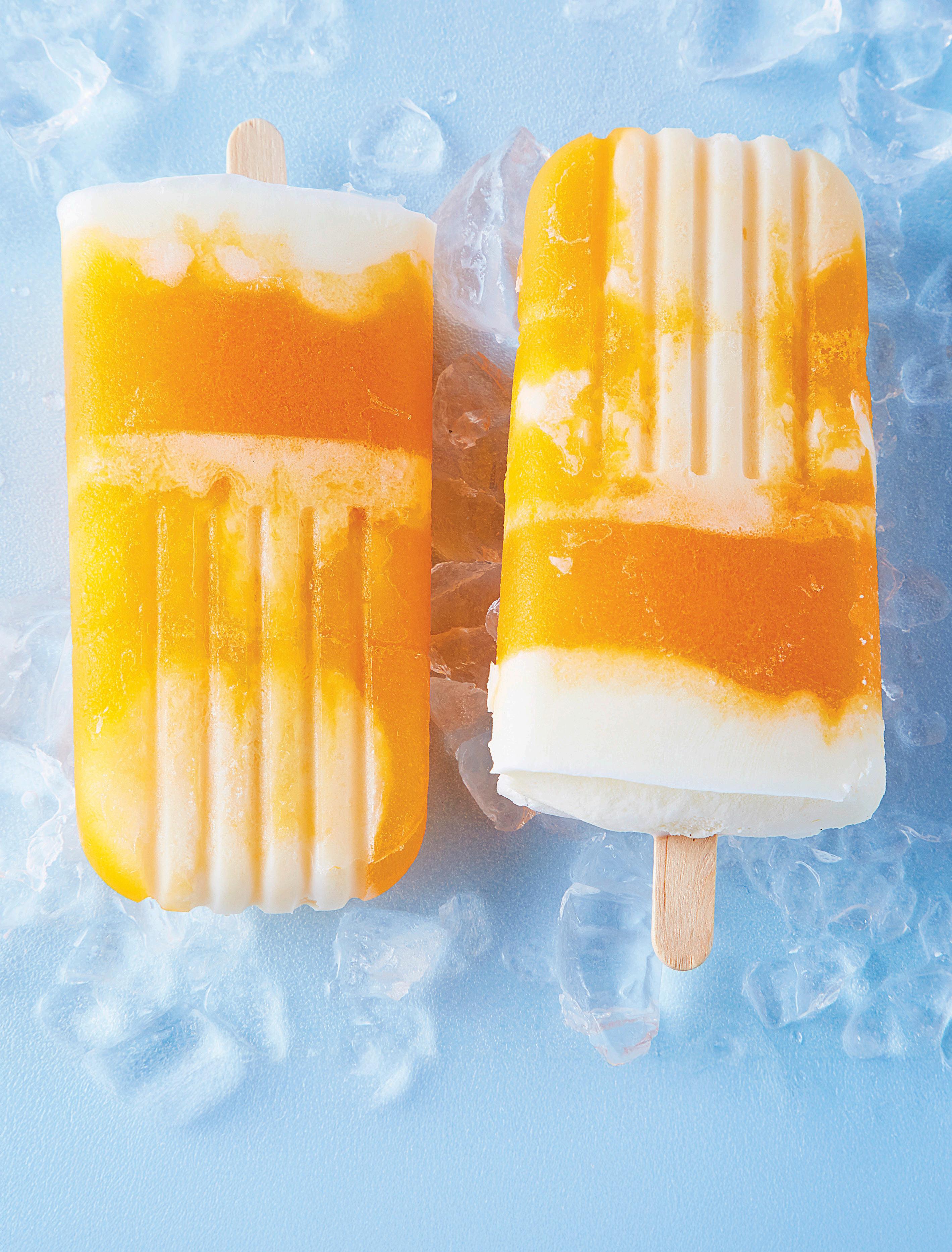 Paleta de yogur, con frambuesa, mango y durazno P. 39