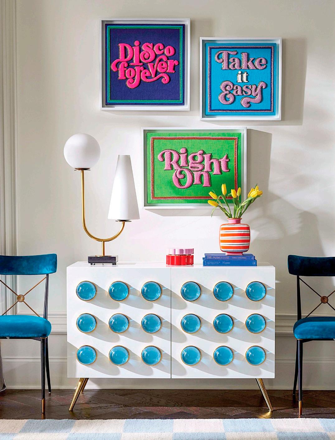 Aparador Globo y cuadros, todo de Jonathan Adler.