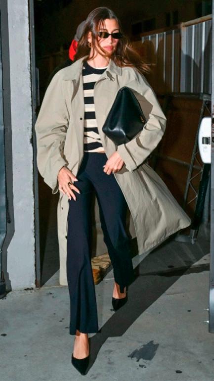 Minimalismo pulido, deportivo elevado, siluetas relajadas y guiños noventeros. Aquí, los looks que puedes recrear esta primavera con prendas accesibles y combinaciones inteligentes. Comenzamos la lista con Dua, quien ha conquistado México en varias ocasiones y apuesta por un conjunto negro con mules en punta, gafas oscuras y bolso animal print que suma actitud. Pasamos a Hailey Bieber con un oversized trench coat, sobre una