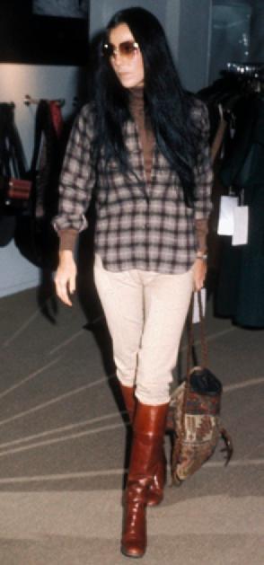 Después, minimalismo y actitud sin esfuerzo: Bowie demuestra que el estilo también reside en lo simple, combinando denim y sastrería relajada. Por otro lado, Cher, a quien admiramos por sus looks, aparece entre lo masculino y lo bohemio, apostando por un layering con naturalidad, botas altas y accesorios. Y, por último, Céline Dion se inclina por tonos