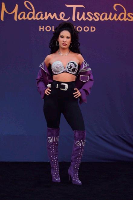 De los puntos turísticos más concurridos en distintas ciudades del mundo son los museos de cera, y Selena Quintanilla es parte de ello. Su figura fue develada en agosto de 2016 en el Madame Tussauds de Hollywood, California. Porta botas y chamarra morada, un pantalón a la cintura con cinturón y bustier, como los que utilizaba la artista, además de un peinado bastante cercano al look que la hizo famosa. En 2017, se realizó un evento similar para develar la figura de cera, pero en el Madame Tussauds de Nueva York.