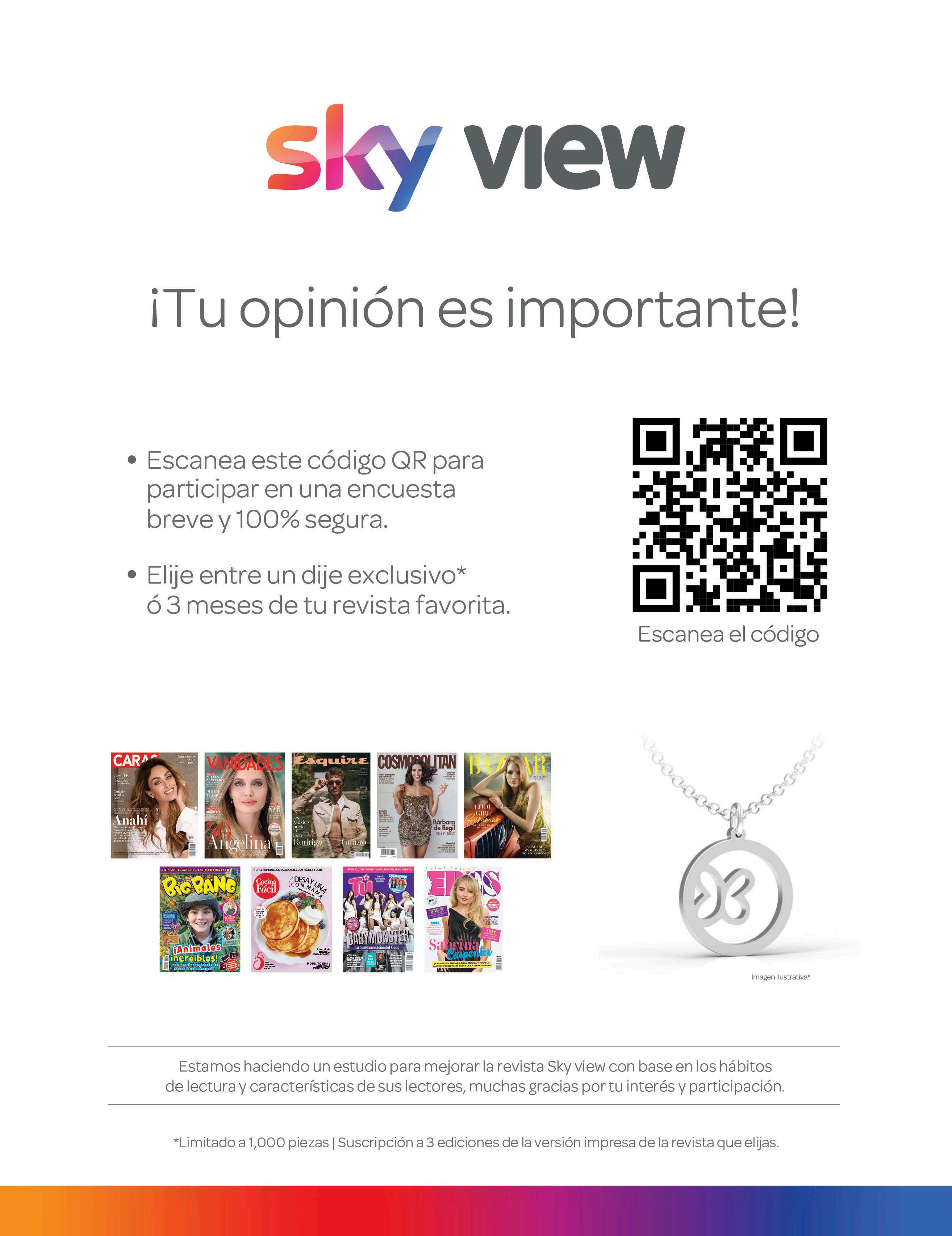 BASES PARA PARTICIPAR EN NUESTRAS TRIVIAS: Promociones válidas para suscriptores de la República Mexicana. Excepto, funciones de teatro y conciertos sólo válidas para suscriptores de la Ciudad de México y área metropolitana. No puedes participar en dos o más de las promociones al mes. Tu respuesta debe enviarse a: triviasskyview@gmail.com Además de la respuesta, añade tu número de suscriptor Sky y Código Postal; de lo contrario, tu participación no será válida. Las respuestas se recibirán a partir del 01 de septiembre a las 9:00 am hasta el 07 de septiembre de 2025 a las 11:30 pm. Los ganadores serán los primeros correos que lleguen a nuestro e-mail con las respuestas correctas y su número de suscriptor y código postal; serán notificados por correo electrónico el 10 del mismo mes (excepto si es función de teatro y/o concierto se notificará previamente) y año (es obligatorio confirmar de recibido en un lapso de 24 horas, de lo contrario, se da por entendido que se renuncia al premio). Los premios deberán recogerse en la oficina de Editorial Televisa Santa Fe, ubicada en avenida Vasco de Quiroga 2000, Santa Fe, Ciudad de México, el 22 de septiembre, con la boleta de suscriptor y/o copia de la misma y esta revista. En caso de ser ganador del interior de la República, te enviaremos el regalo por mensajería, y se te notificará vía correo electrónico; deberás enviar copia de tu boleta de suscriptor vía correo electrónico. Para consultar el aviso de privacidad puedes visitar la página: editorial.televisa.com/aviso/. Promoción notificada ante la Procuraduría Federal del Consumidor (Profeco), permiso en trámite. Cualquier incumplimiento, repórtalo a la Profeco. Para más información, llama al 52-61-20-00. Ext. 11671. Editorial Televisa no se hace responsable por el uso de estos productos. Restricciones: sólo participan suscriptores activos y que tengan vigente la suscripción