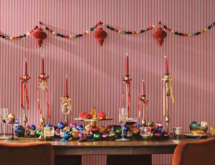 Si adoras la estética maximalista, esta decoración es para ti, ¡pues se inspira en la magia del teatro y la pantomima navideña! Los divinos tonos joya le agregarán un toque de glamour a tu hogar: rojo intenso, azul pavo real y ciruela, salpicados de rosa, amarillo, dorado y verde… ¿Ya viste los estampados de arlequín en las esferas, el papel para envolver los regalos o en la estrella que corona al árbol? Intégralos en una hermosa variedad de colores, ya que evocan la naturaleza teatral de los cuentos encantados, mientras que los detalles de cristal y abalorios añaden una pequeña dosis de brillo. Y si quieres un toque divertido en tu árbol, cuelga esferas de animalitos ¡y hasta bolsas de palomitas! ¿Un tip? Este año los moños vienen con todo, así que átalos en las servilletas de tu mesa navideña y cuélgalos en tu arbolito.
