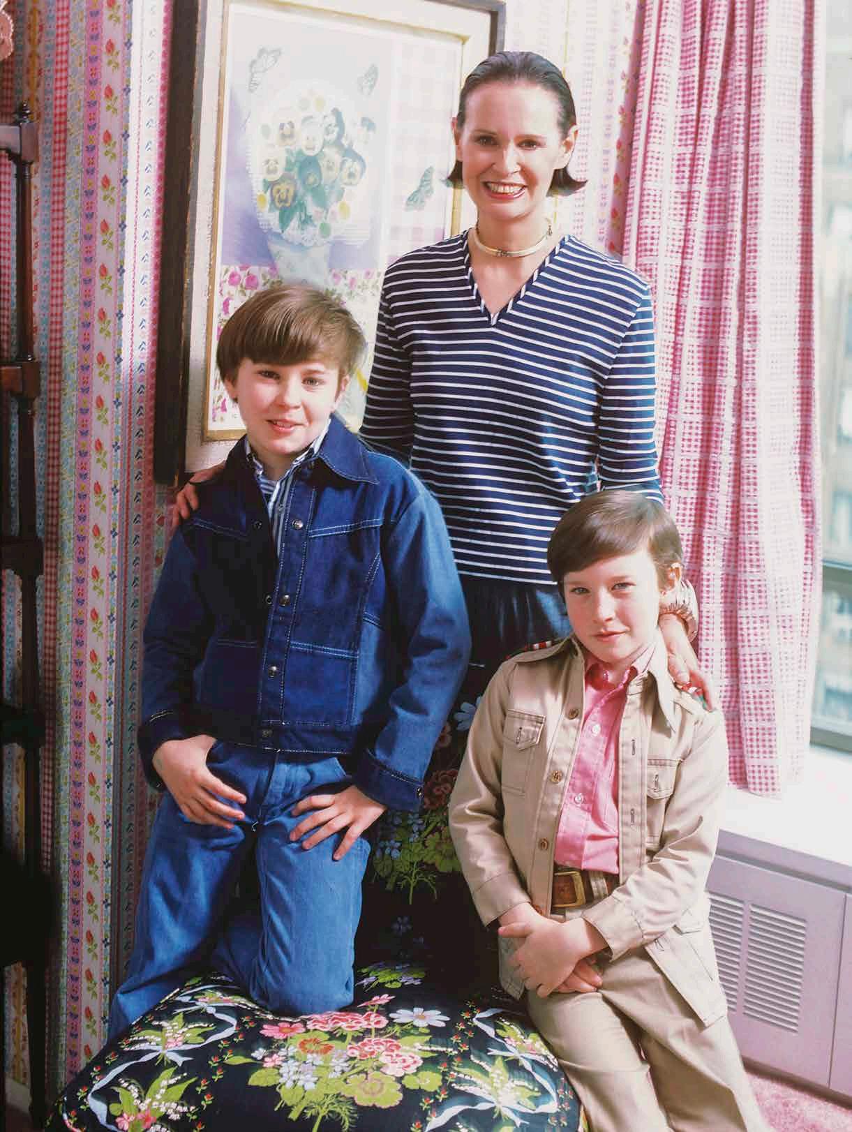 Gloria Vanderbilt (1976) con sus hijos, Anderson y Carter, en su departamento en Nueva York.