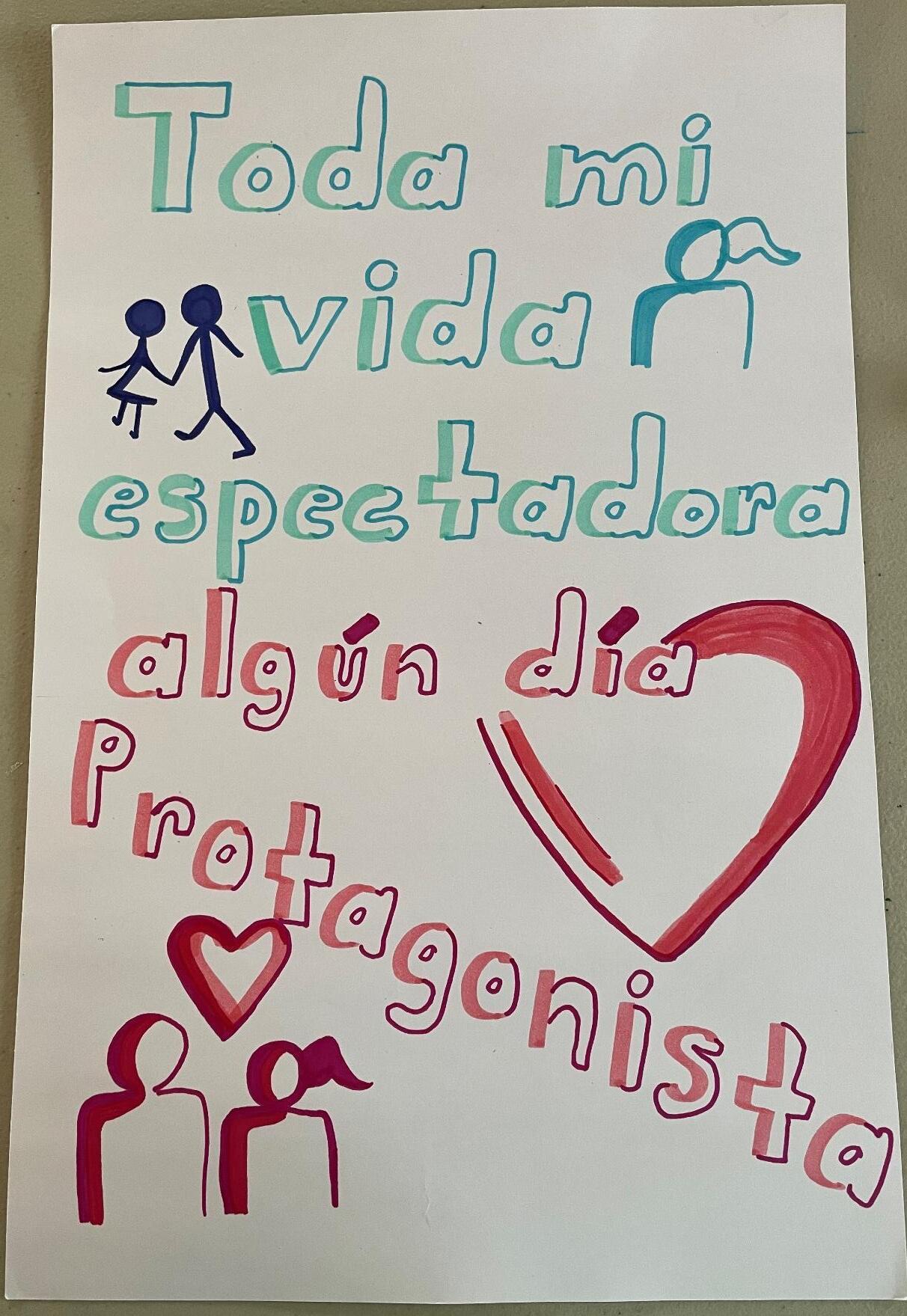 Pero mi cartel trata sobre mi historia en toda mi vida en el que dice (Toda mi vida espectadora algún día protagonista), y siento que nos representa a algunas personas que en nuestra vida nunca emos tenido novio y solo vemos a nuestros amigos tener su vida amorosa muy bonito, en él nos ilusionamos con la idea de que algún día llegaría nuestro compañer@ de toda la vida