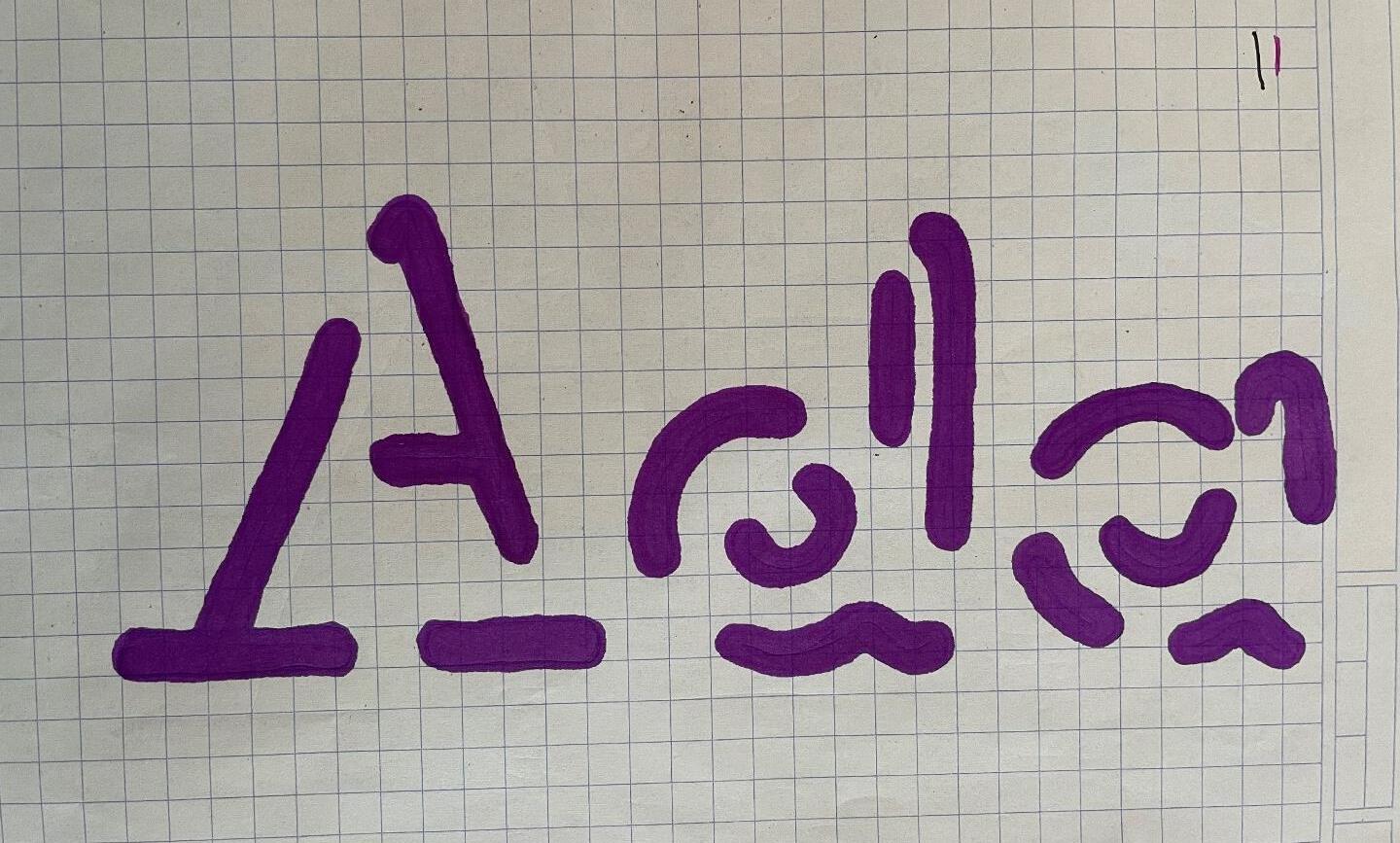 Yo elegí la tipografía de palo seco con ausencia de líneas, en mi punto de vista yo quería lograr algo simple pero que se entendiera las letras, al investigar en Pinterest, como buena estudiante que soy, buscaba, tipografías minimalistas, simples, que llamaran la atención, al inspirarme cree esta tipografía en lo personal es de mi agrado pero pienso que no lo vería en la calle muy seguido pero tal vez yo podría iniciar una moda y que los demás tome mi idea, pero ya lo veremos, al utilizar el color morado como era el único que tenía en ese momento, también pensé que llamaría la atención ya que es un color un poco llamativo y se podría ver con facilidad, al investiga lo que simboliza el color morado esto fue lo que descubrí, que el morado simboliza riqueza, poder, dignidad, sofisticación, creatividad y espiritualidad, podria decir que me representa un poco.