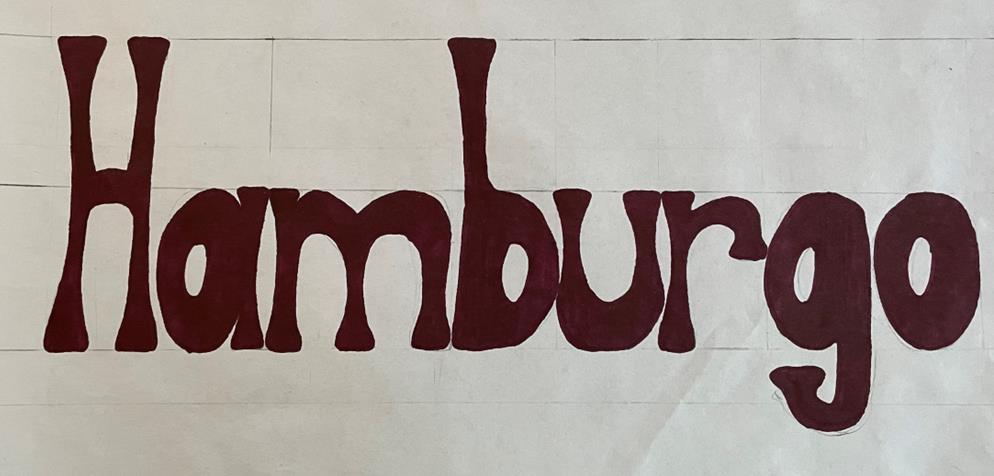La palabra Hamburgo no me acuerdo exactamente, ¿cuál era el objetivo del trabajo?, pero a lo que recuerdo era crear una tipografía que lo representara o nosotros creamos que pertenezca a la palabra, al buscar en Pinterest inspiración para crear tal trabajo, no podía encontrar que para mí sería el diseño correcto a la palabra.