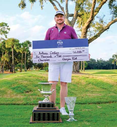 Also, in the final pairing was Matt Sanders, PGA Assistant Professional at West Pines Golf Club, who began the day tied with Cordes at 6-under-par and added excitement with a holein-one on the par 3 168-yard 6th hole. With three holes left to play, Cordes, Bide, and Sanders were locked in a three-way tie, setting the stage for a thrilling finish before Cordes sealed the victory with his birdie on 18.