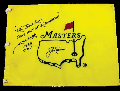 This flag was signed by both CBS broadcaster Jim Nantz and Jack Nicklaus in 1986, the year Nicklaus won his sixth green jacket. Nantz, who was calling the play at the 16th hole, said that ‘The Bear Comes Out of Hibernation’ in reference to the putt Nicklaus sank to take a share of the lead. The flag fetched $1,961 at a recent auction.