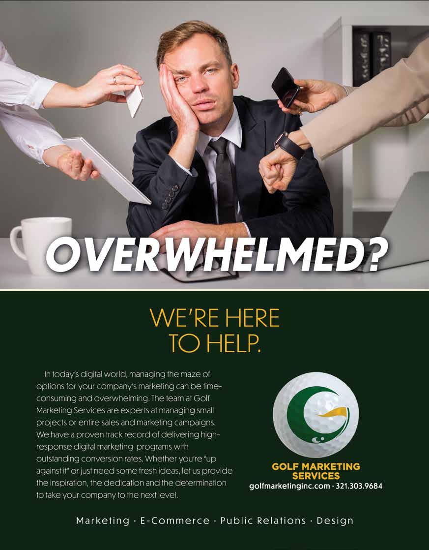 ©2022 Golf Central Magazine. No portion of this publication may be reprinted without the prior written permission of the Publisher. Editorial contributions are welcome, but Golf Central Magazine assumes no responsibility for unsolicited proposals, manuscripts and photographs. All materials submitted not accompanied by a selfaddressed stamped envelope will not be returned. Mailing, electronic mailing or faxing of contributions constitutes an expressed warrant on the part of the contributor that all material is original and does not infringe on the rights of others. Golf Central Magazine retains all reprint rights and reserves the right to edit any submitted material to meet our specifications for publishing and or use in advertising or promotion. The Publisher and staff are not responsible for any loss or grievance by any person or persons whatsoever, due in any way or in part to the content of this publication. The Publisher reserves the right to refuse to accept any material deemed inappropriate or in bad taste.