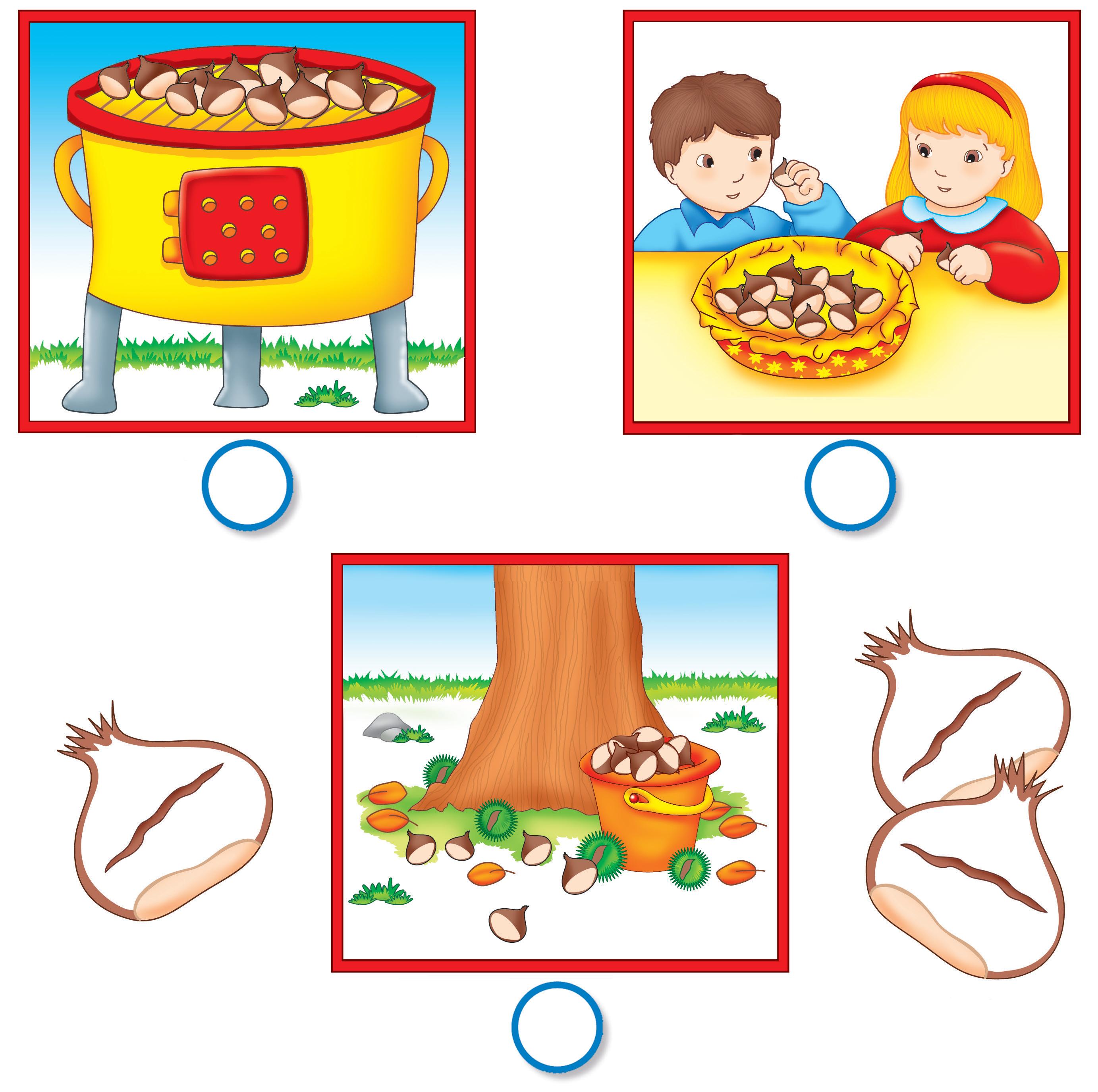  Denumește imaginile din cercuri. La ce anotimp se referă fiecare?
