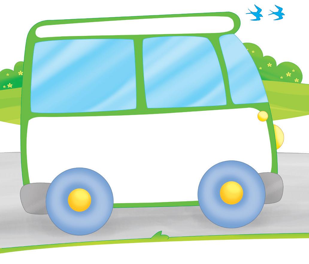 Desenează chipul unui copil la geamul autocarului din partea de jos a paginii.