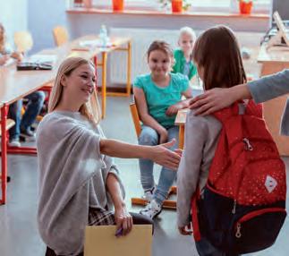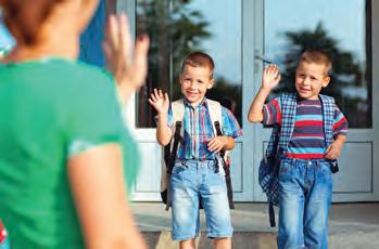 • copii care își iau la revedere de la mama lor la intrarea în școală