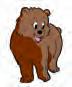 Cinci boboci se duc la baltă. Pe un bolovan stă o broască. Un boboc se sperie.