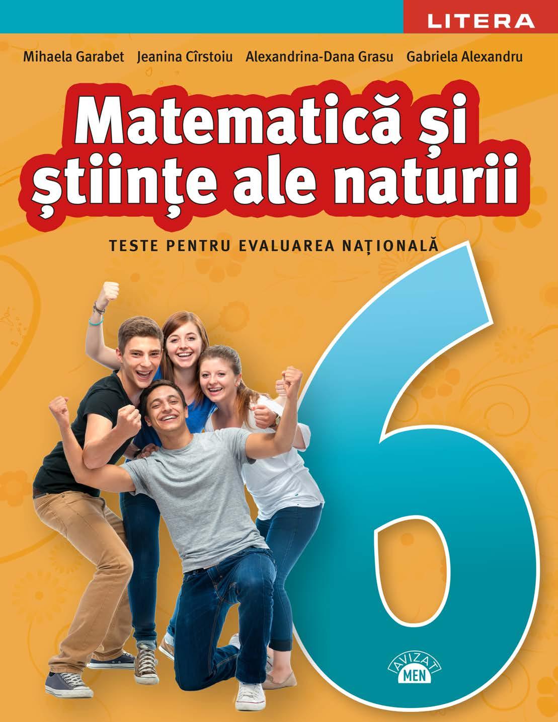 Descrierea CIP a Bibliotecii Naționale a României Matematică şi ştiinţe ale naturii: clasa a VI-a: teste pentru Evaluarea Națională/ Mihaela Garabet, Jeanina Cîrstoiu, Alexandrina-Dana Grasu, Gabriela Alexandru. –Bucureşti: Litera, 2020 ISBN 978-606-33-4365-0