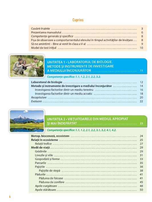 2. Formarea competențelor. Manualul contribuie la formarea cunoștințelor și competențelor specifice studiului lumii vii, asigurând texte accesibile și imagini clarificatoare pentru înțelegerea noțiunilor de ecologie și sistematică (chiar dacă nu sunt astfel numite).