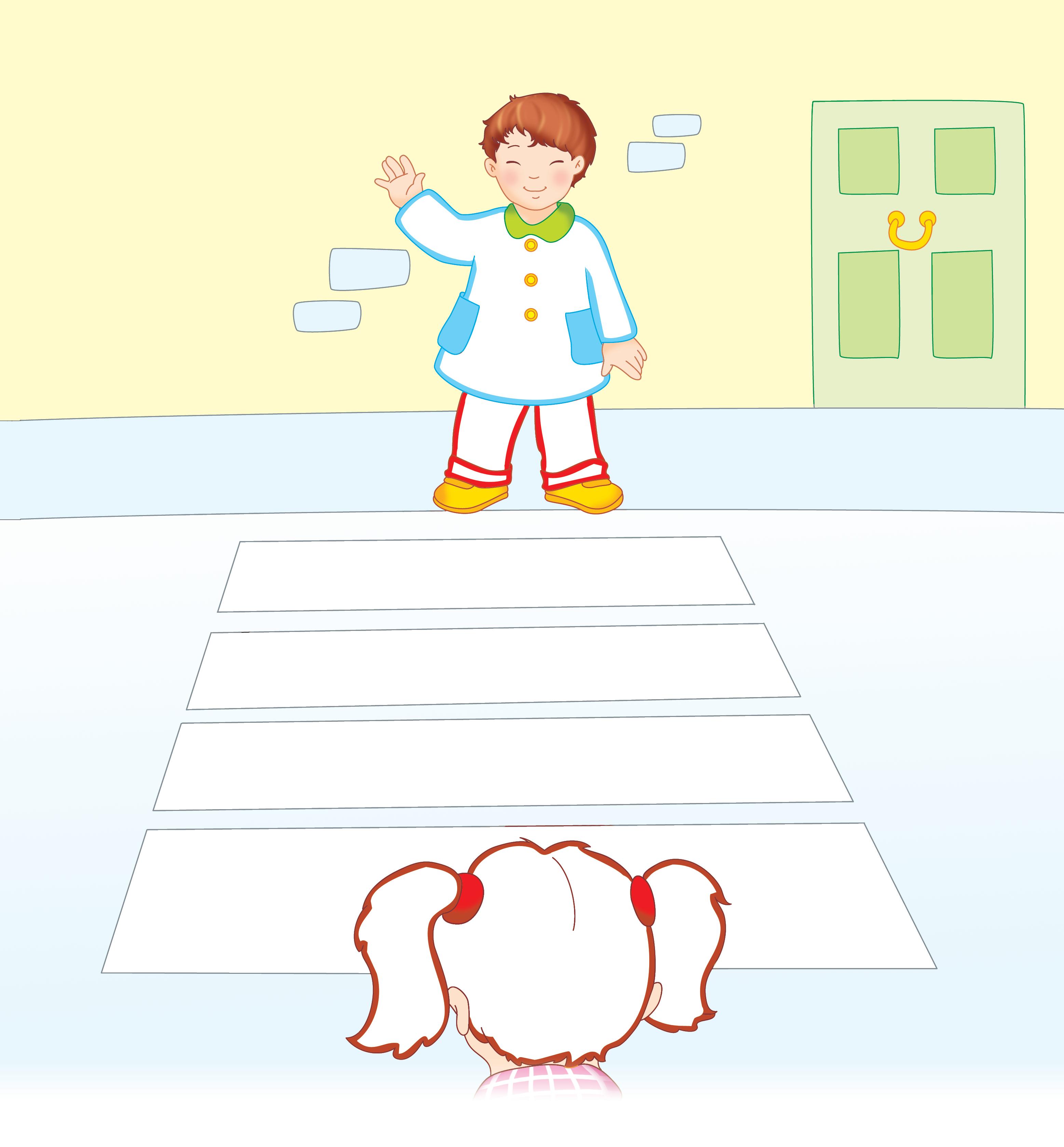 2. Trasează trecerea de pietoni pe conturul punctat.