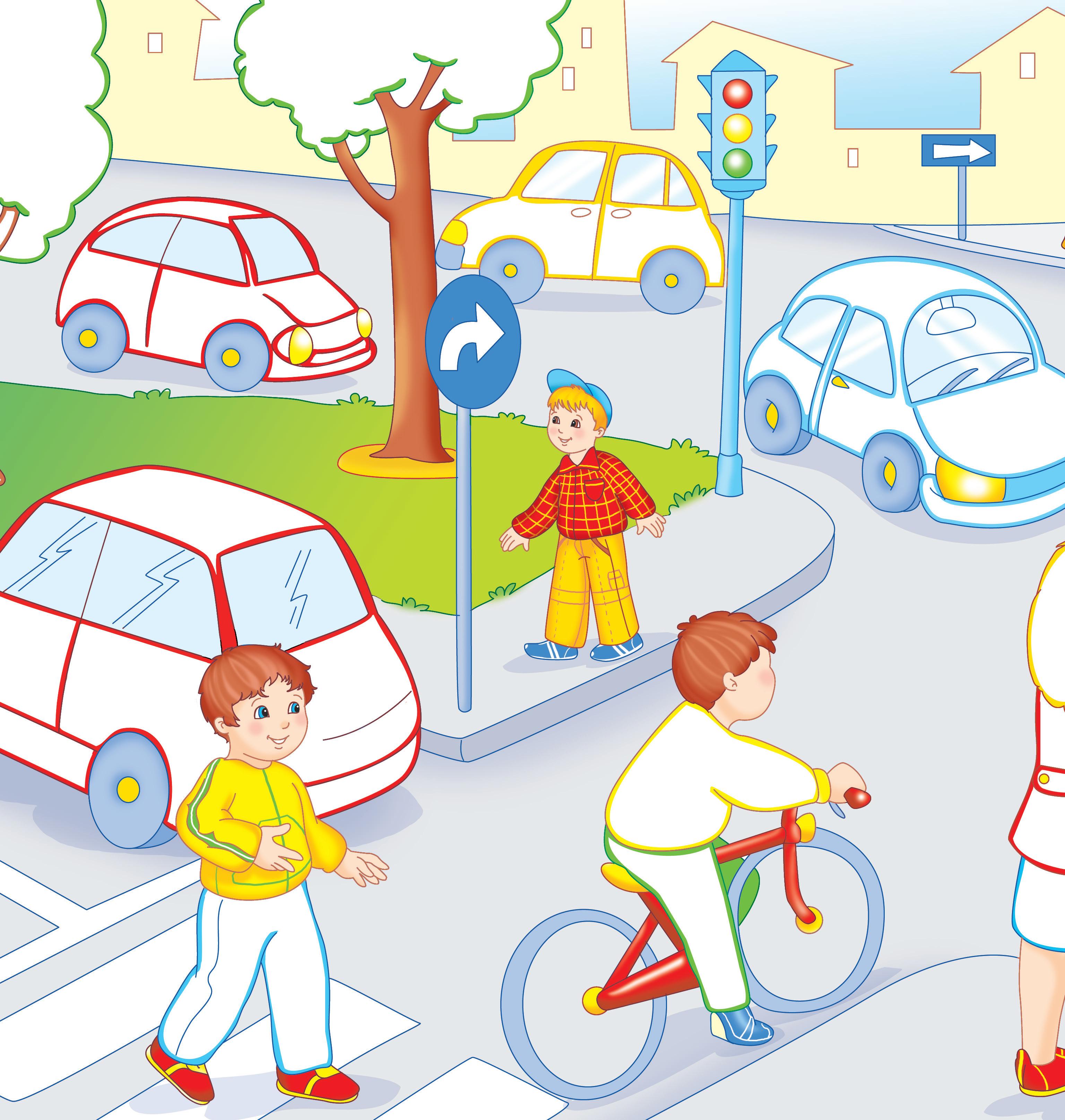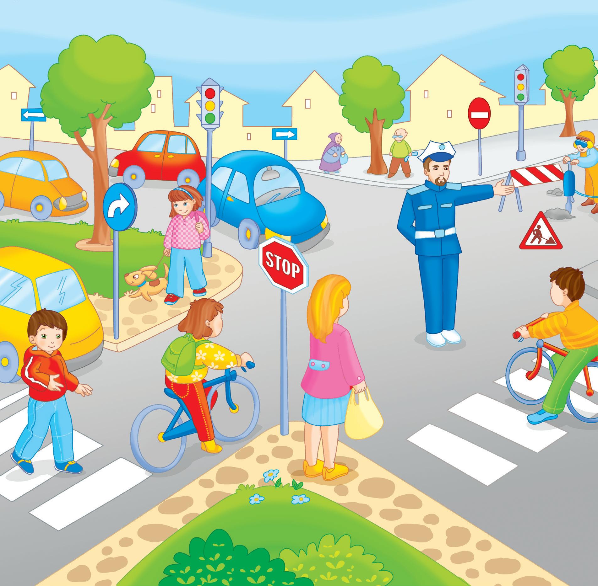 2. Descrie ce vezi în imagine. Tu ai trecut vreodată printr‑ o intersecție? La ce trebuie să fii atent?