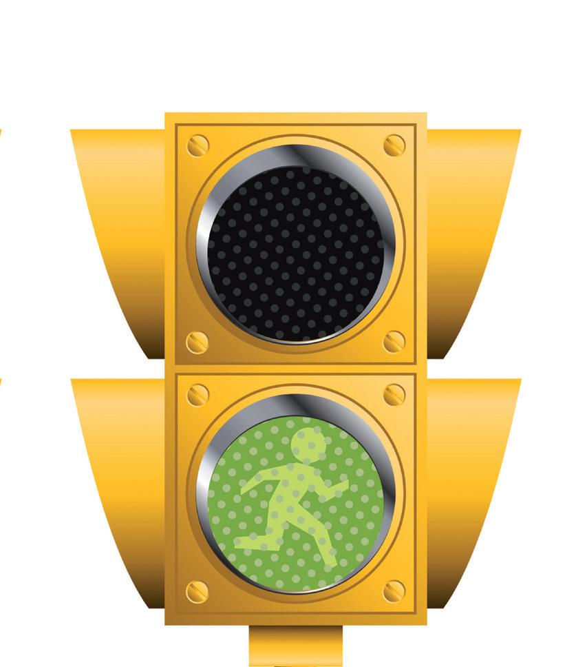 3. Colorează semaforul pentru pietoni, respectând culoarea conturului.