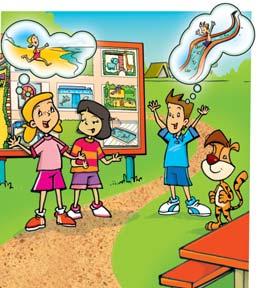 ex. 1, pag. 94 // On holiday. Look, there’s a swimming pool. There’s a park. // There’s an ice rink too. I like ice rinks. Let’s go to the beach. We can swim in the sea. // No, I want to go to the water park. Where do you want to go, Tiger? Is there an aquarium? // Yes, there is. Is there a zoo? Yes, there is. Let’s go to the zoo. // We can see lions and tigers. Oh dear, we all want to go to different places. No problem. // I’ve got an idea. Look, here are the names of eight places. Mum, can you help us please? // Yes, of course. Can you take a piece of paper? It says fun fair. OK, let’s go to the fun fair. // This is the fun fair. It’s fantastic. It’s great. It’s amazing. Wow. // I want to see lions and tigers at the zoo. I’ll go and see lions and tigers. // Hello, everyone. Welcome to the funfair. Hello. Welcome to the funfair. Look, Tiger. There’s a lion. // And there’s a tiger. Hello, everyone. Welcome to the funfair. // Hello. Welcome to the funfair. Tiger, look at us. // Hi, Jay. Hi, Sue. Hi, Lee. Oh, I like the funfair. It’s fun.
