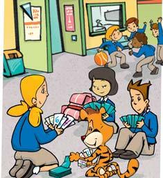 ex. 1, pag. 48 // Break time. Sue, Jay and Lee are at school. It’s break time. // I want to play football. I want to play a computer game. Do you want to play cards? Good idea, Sue. // Let’s play cards with Lee and Tiger. Has everyone got seven cards? Yes. Yes. // Yes. Good. Let’s play. Jay, you can start. Lee, have you got a four? No, I haven’t. // Tiger, it’s your turn. Sue, have you got a six? Yes, I have. Oh, good. // Lee, have you got a seven? Yes, I have. I’m the winner. // One, two, three. One, two, three, four, five, six, seven. That’s incredible. // Wow. Well done, Tiger. I like this game. I want to play again. // The children and Tiger play again. Jay, have you got a two? Yes, I have. // Tiger, have you got a three? Tiger, you’re cheating. No, I’m not. Yes, you are. You’ve got extra cards under your foot. Oh, Tiger. // Tiger, that’s not fair. Sorry, everyone. We don’t want to play cards now. // I want to play basketball. I want to play basketball too. Oh, Tiger, now they don’t want to play with you. // You’re right. I’m sorry. I’m sorry, Sue. Do you want to play a board game? // OK, but don’t cheat. No, OK.