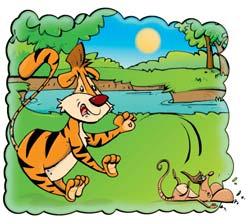 ex. 1, pag 60 // – The sore paw. Tiger is sleeping. He’s dreaming. He’s got a sore paw. Oh, I’ve got a sore paw. Along comes an elephant. // – Boom, boom. // – Hello, elephant. Look, I’ve got a sore paw. Can you help me, please? No, sorry, I can’t. I’m scared of tigers. And the elephant goes away as fast as it can. // Hoo hoo hoo hoo! // – Oh, I’ve got a sore paw. Along comes a giraffe. Hello, giraffe. Look, I’ve got a sore paw. Can you help me, please? // – No, sorry, I can’t. I’m scared. // – And the giraffe goes away as fast as it can. // Hoo hoo hoo hoo! // –Oh, I’ve got a sore paw. Along comes a snake. Hello, snake. Look, I’ve got a sore paw. Can you help me, please? No, sorry, I can’t. I’m scared. And the snake goes away as fast as it can. Oh, I’ve got a sore paw. Along comes a monkey. Oh! Hello, monkey. Look, I’ve got a sore paw. Can you help me, please? No, sorry, I can’t. I’m scared. And the monkey goes away as fast as it can. Oh, I’ve got a sore paw. Along comes a little mouse. Hello, mouse. Look, I’ve got a sore paw. Can you help me, please? Yes, of course I can. Oh, dear. You’ve got a thorn in your paw. The mouse pulls. // – Hey, hey. // – Oh and pulls. Oh. And the thorn comes out. Yeah. Oh. Oh, my poor is better now. Thank you. Mouse. You’re welcome. The mouse looks at Tiger. Can you help me now, please? Tiger? I’m a long way from home and I can’t cross the river. Yes, of course I can. Mouse. Jump on my back. I can take you home. The little mouse jumps on Tiger’s back. The elephant, the giraffe, the snake and the monkey are very surprised. // – Oh. Look, the. // – Little mouse isn’t scared of tiger. // – The little mouse and tiger are friends. Amazing. // –Oh! Oh! Hold on tight. // My arm. Thank you. Tiger.