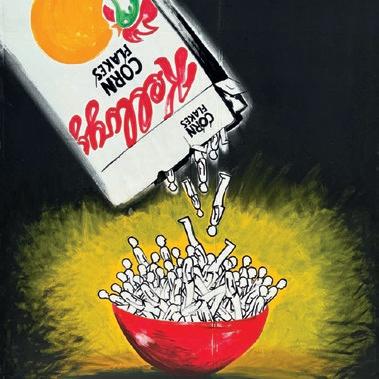 Mosca a Pesaro, catalogato da NFC Edizioni di Rimini. Una mostra ironica e potente, dove il linguaggio grafico si fa pittura e la pittura diventa riflessione sociale e culturale. “Nasce da una fame doppia: estetica e umana. È una tavola imbandita di immagini e pensieri: un invito a guardare ciò che consumiamo, ma anche ciò che ci consuma.” La memoria si fa materia viva: una forchetta gigante, omaggio a Bruno Munari, diventa simbolo di appetito collettivo; una tavola imbandita riflette desideri e paradossi della nostra epoca. “Le cose nuove mi affascinano. La forchetta di Gran Buffet è sintesi: comunica un messaggio e dà emozione. Non è fare scuola a nessuno, ma raggiungere una sintesi che per me è importante.” La mostra è dedicata al padre Mario: “Dentro c’è anche la sua memoria. È un dialogo tra generazioni e linguaggi.” Il filo che unisce passato e futuro è l’ironia, capace di scardinare la superficie e ridare senso al quotidiano. Cattolica resta un punto fermo: “Le radici non sono dove nasci, ma dove sono sepolti i tuoi nonni. È lì che impari a capire chi sei. Da lì nasce tutto questo: un’arte che racconta la vita con un sorriso, anche quando punge.”