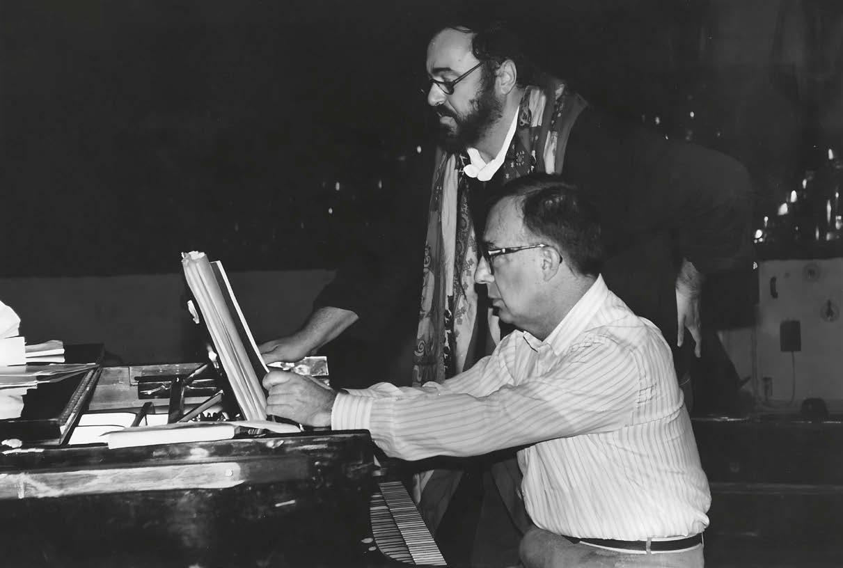 Luciano Pavarotti e Leone Magiera in prova prima di un concerto negli anni ’70