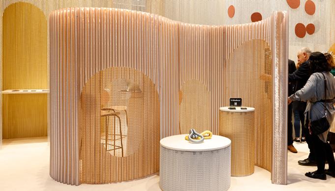 Si sono visti bio-polimeri e soluzioni bio-ispirate con prestazioni elevate; pavimenti ottenuti da recupero (scarti tessili, componenti organiche) senza rinunciare a durabilità e calpestio. Si impone una nuova grammatica: lo store non produce rifiuti, produce componenti che rientrano nel ciclo. In questo quadro, l’adozione di giunzioni meccaniche “a secco” (niente colle, siliconi, incollaggi permanenti) spinge la modularità verso il cradle-to-cradle: smontare, riconfigurare, riutilizzare.