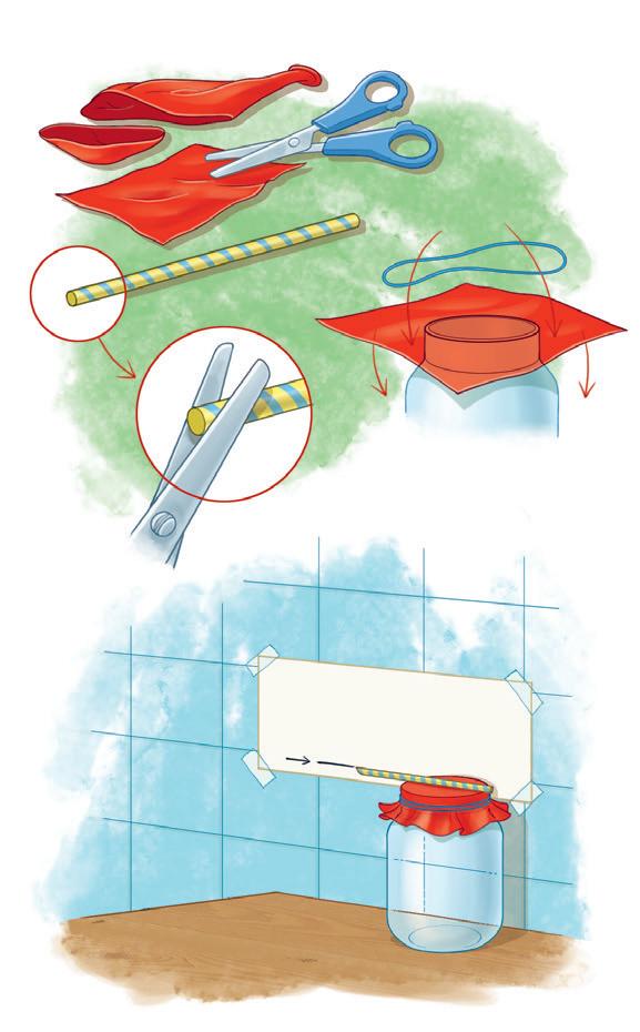 un palloncino • un contenitore di vetro • una cannuccia • elastici • matita • forbici • colla vinilica • cartoncino • nastro adesivo